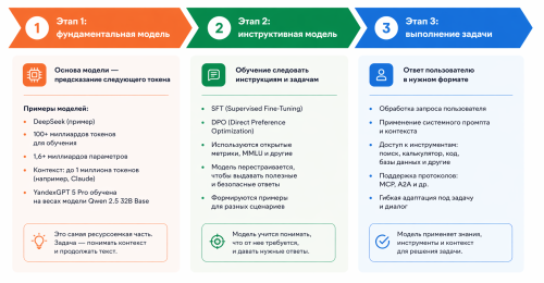 Он задаёт модели направление: ответить на вопрос, сделать краткое описание, объяснить тему. И уже после этого происходит взаимодействие с пользователем — когда система получает запрос и формирует ответ.